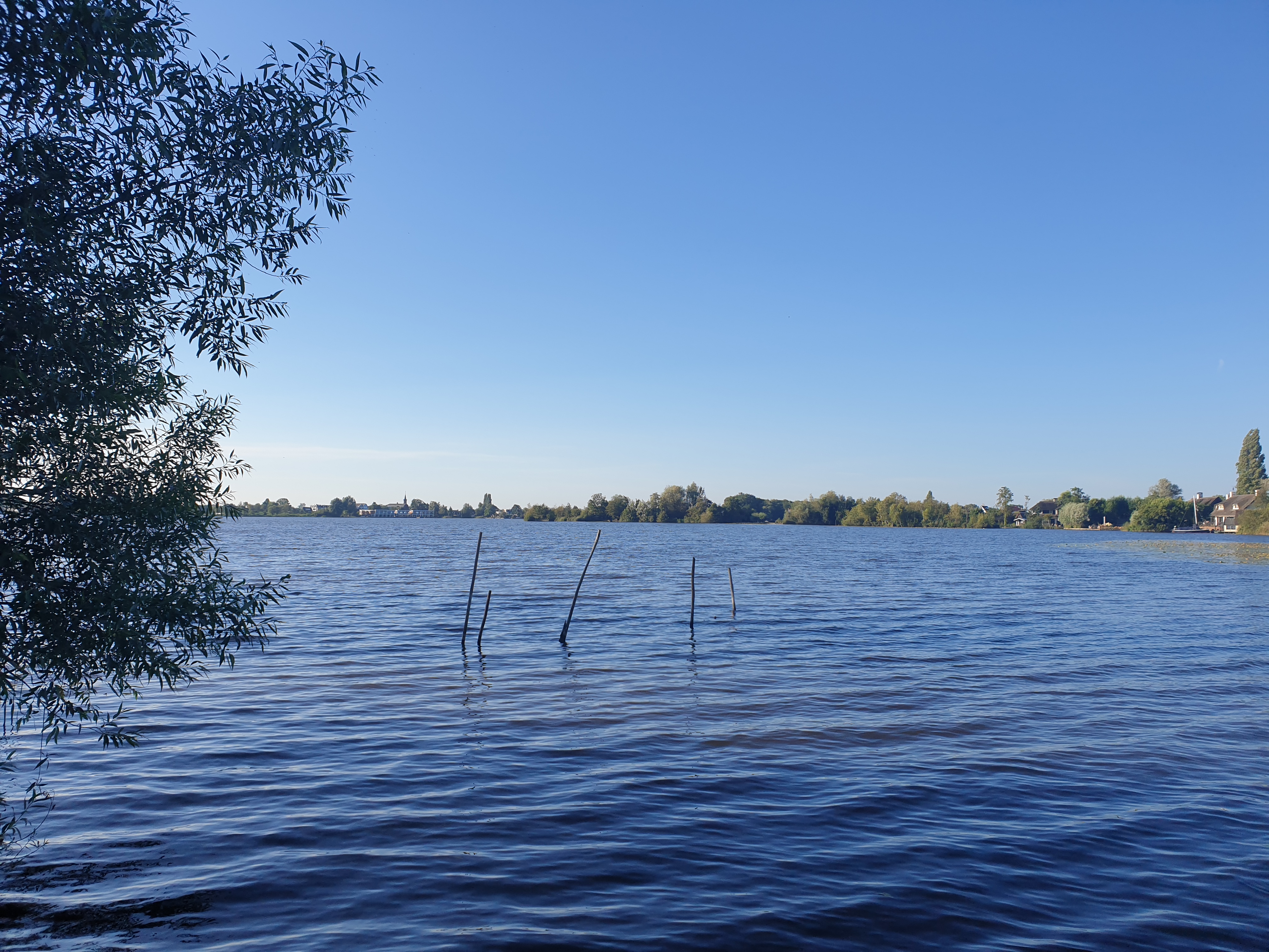 Ze zal niet lang meer alleen zijn op deze vroege ochtend. Bij de jachthaven aan de rand van de plas ziet ze bedrijvigheid, dadelijk zullen de eerste zeilboten het water opvaren. Het strand aan de overkant zal bevolkt worden door ouders met jonge kinderen en pensionado’s die verkoeling zoeken op hun lange fietstocht. Ook het pad langs de kant waar zij het water is ingegaan zal drukker worden. Met wandelaars, met of zonder hun hond.